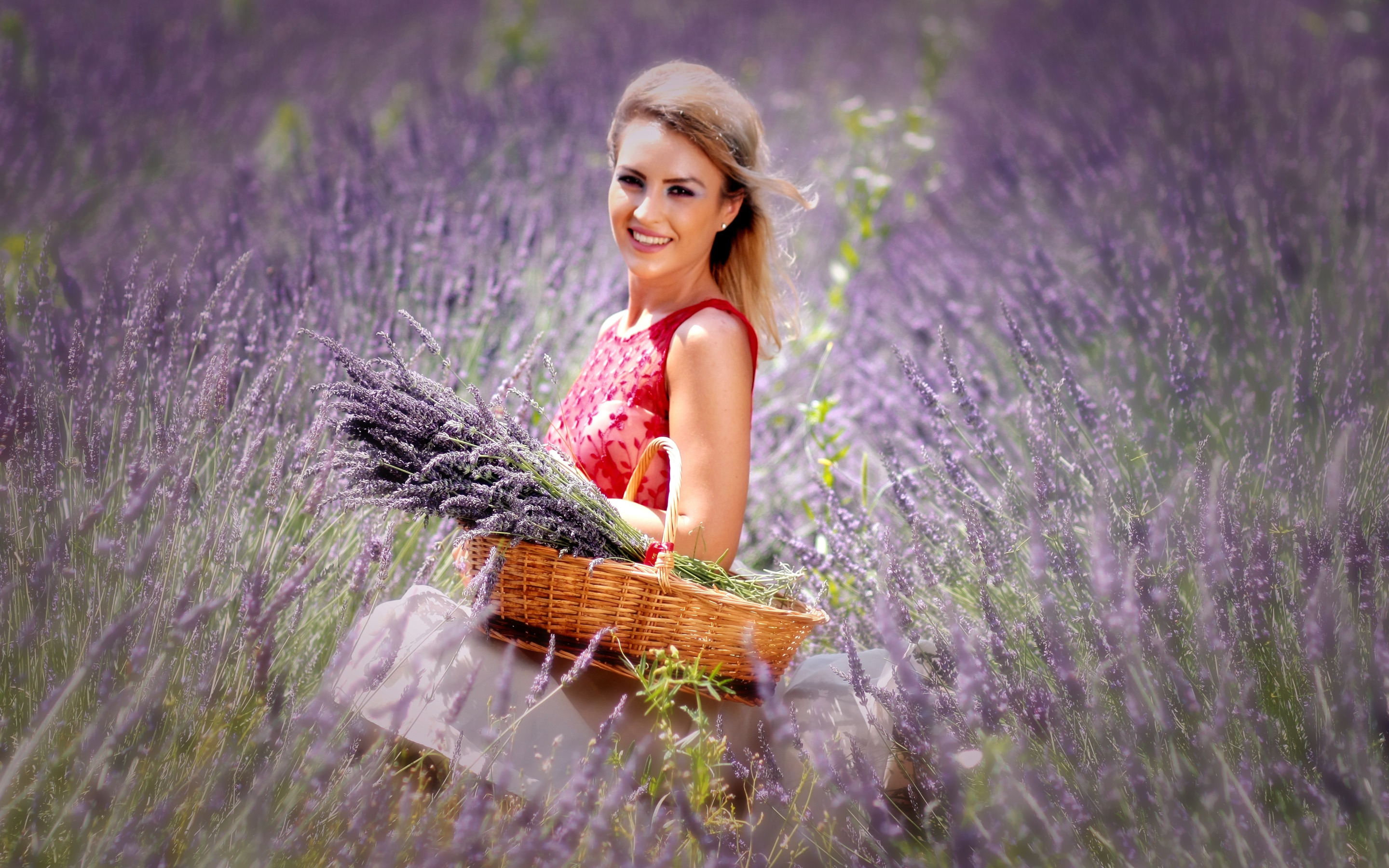 Назад к обои поле, девушка, природа, корзина, лаванда