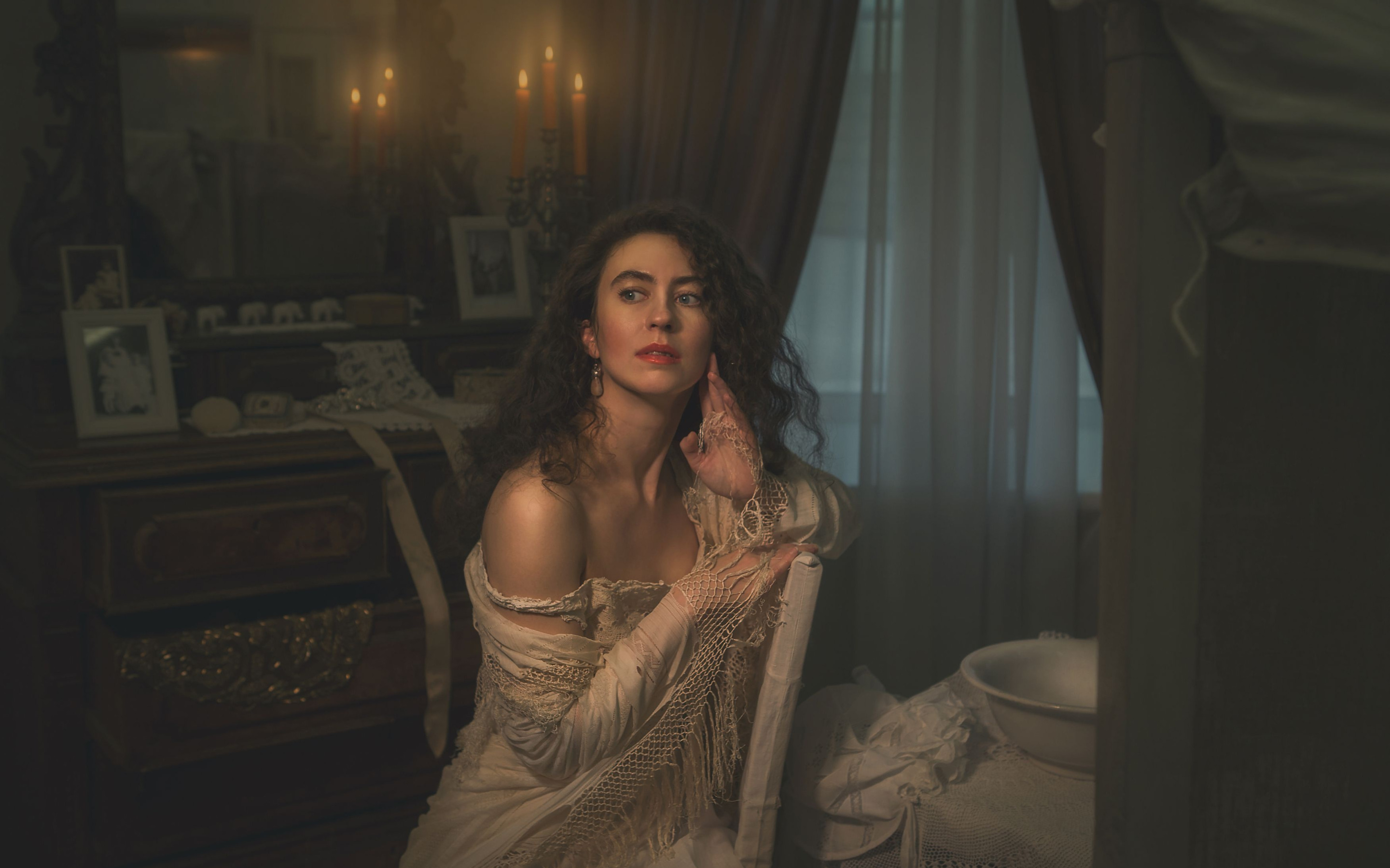 Назад к обои девушка, комната, свечи, атмосфера, кудрявая, Татьяна Шепелева