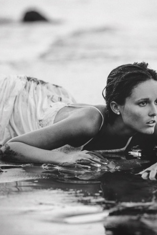 Назад к обои girl, wet, beach, dress, eyes, hair