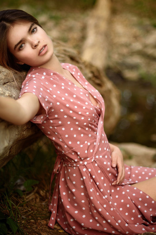 Назад к обои взгляд, девушка, поза, настроение, платье, бревно, Денис Ланкин