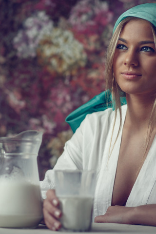 Назад к обои девушка, цветы, улыбка, молоко, декольте, платок