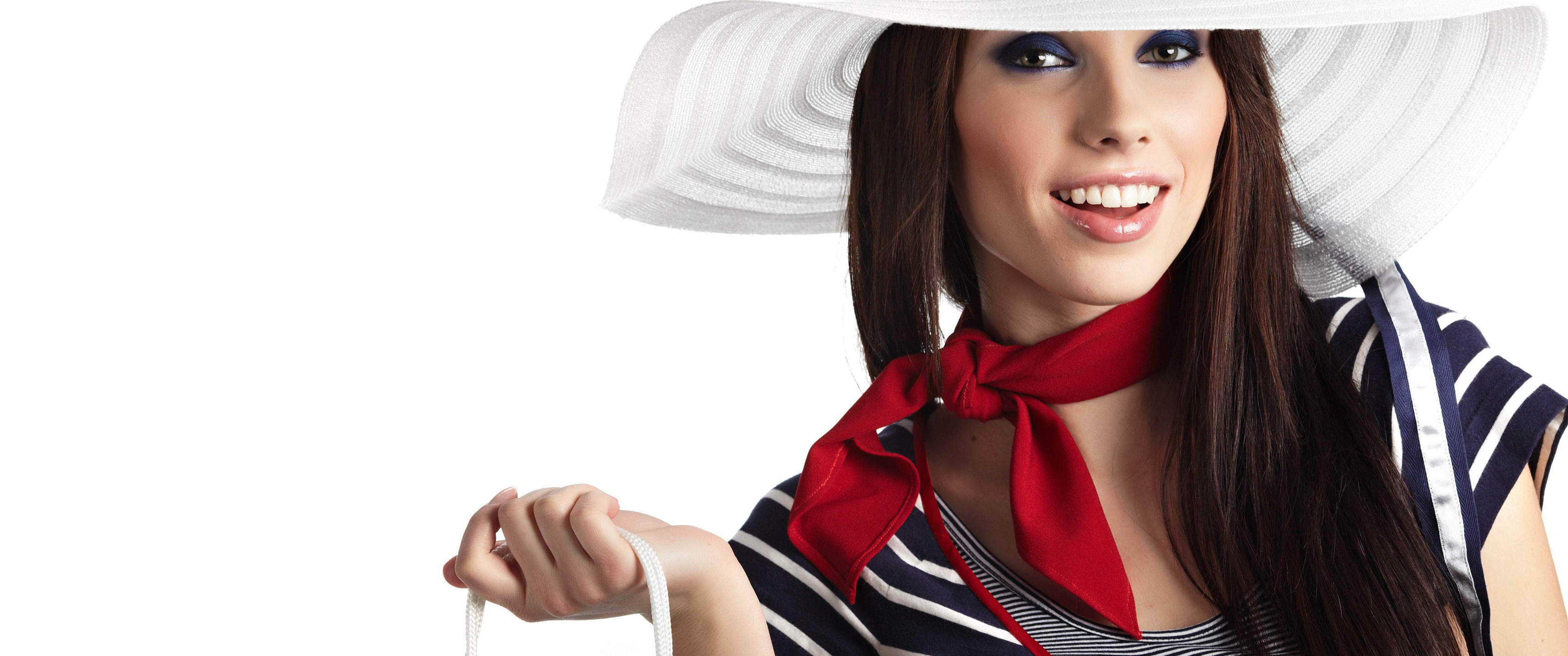 Назад к обои девушка, улыбка, шляпа, брюнетка, платок, матроска