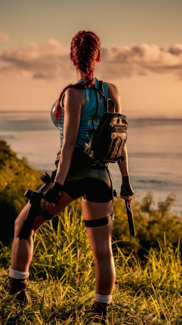 Назад к обои девушка, природа, поза, оружие, тело, Лара Крофт, Bianca Beauchamp, косплей