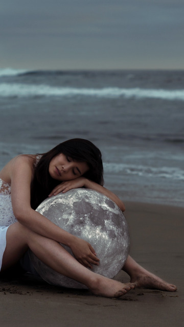 Назад к обои море, девушка, шары