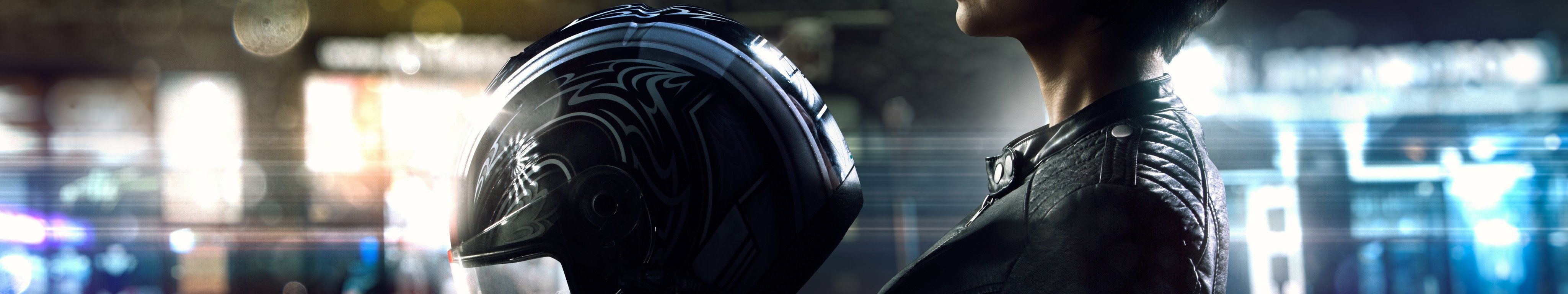 Назад к обои девушка, макияж, куртка, шлем, профиль, мотоциклистка