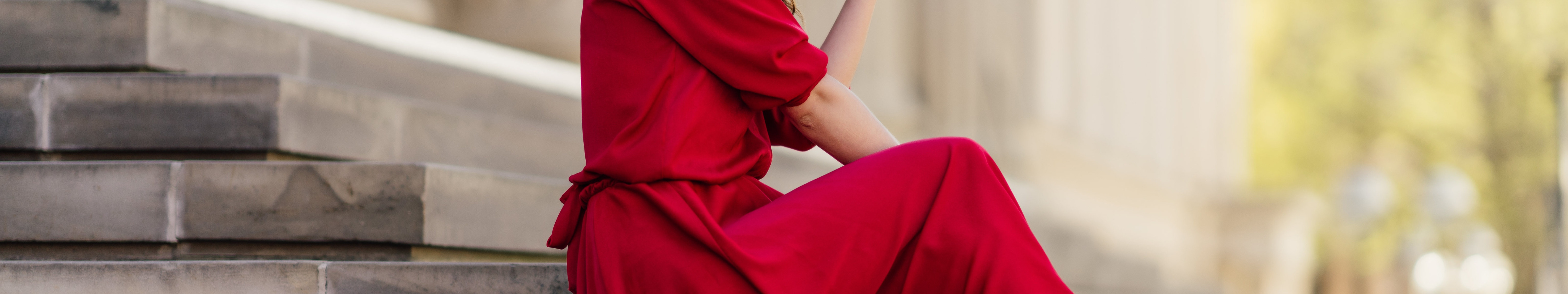 Назад к обои девушка, поза, лестница, ступени, красное платье, Andreas-Joachim Lins, Lea Er