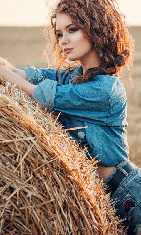 Назад к обои поле, взгляд, девушка, поза, шорты, фигура, сено, красивая
