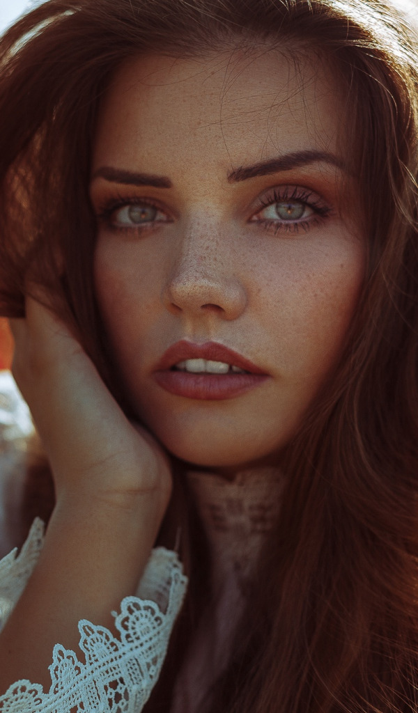 Назад к обои взгляд, девушка, лицо, портрет, руки, веснушки, рыжая, рыжеволосая