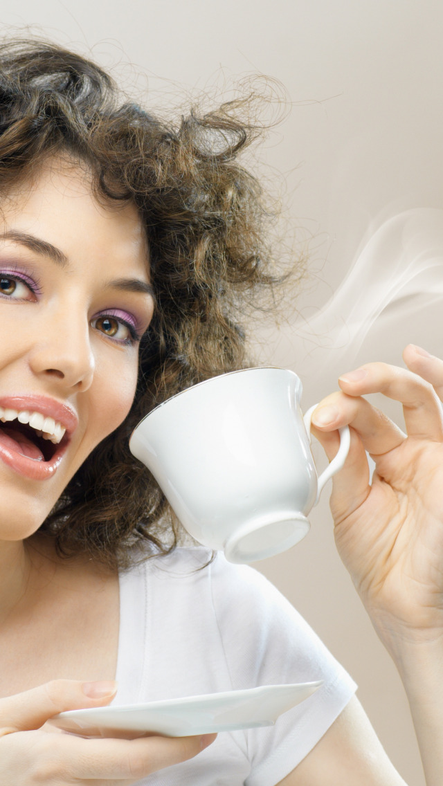Назад к обои девушка, кофе, чашка, дымка, шатенка, кудри