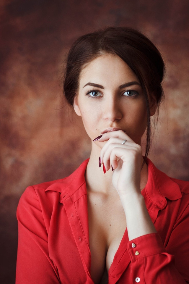 девушка, фон, портрет, макияж, прическа, шатенка, красивая, в красном