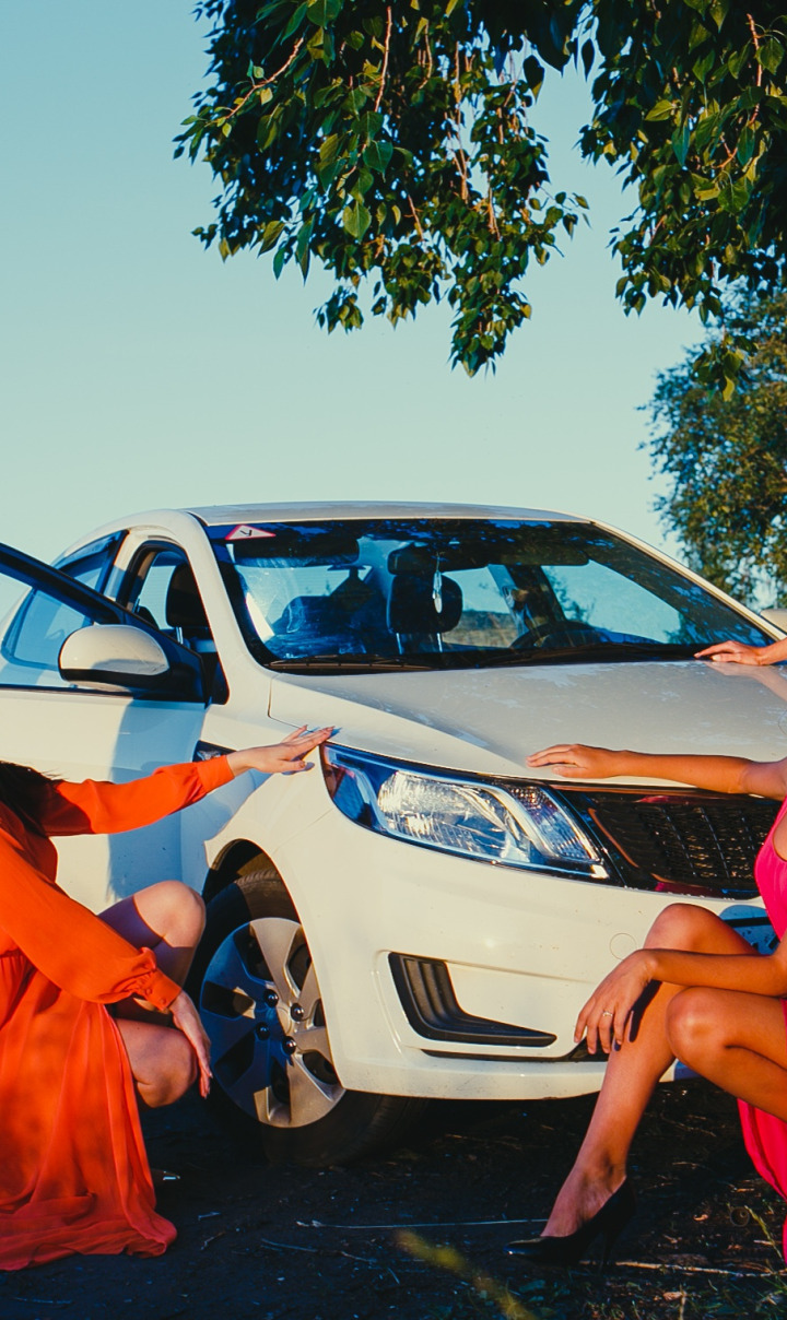 Назад к обои небо, взгляд, девушка, платье, Kia, белый авто