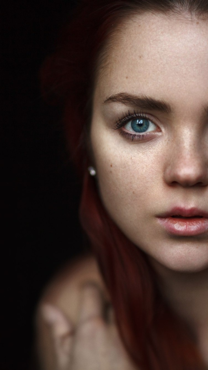 Назад к обои взгляд, макро, лицо, фон, милая, модель, портрет, веснушки