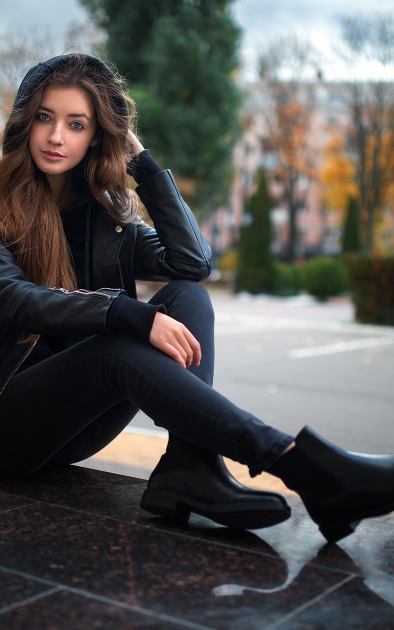 взгляд, поза, модель, портрет, макияж, куртка, прическа, капюшон