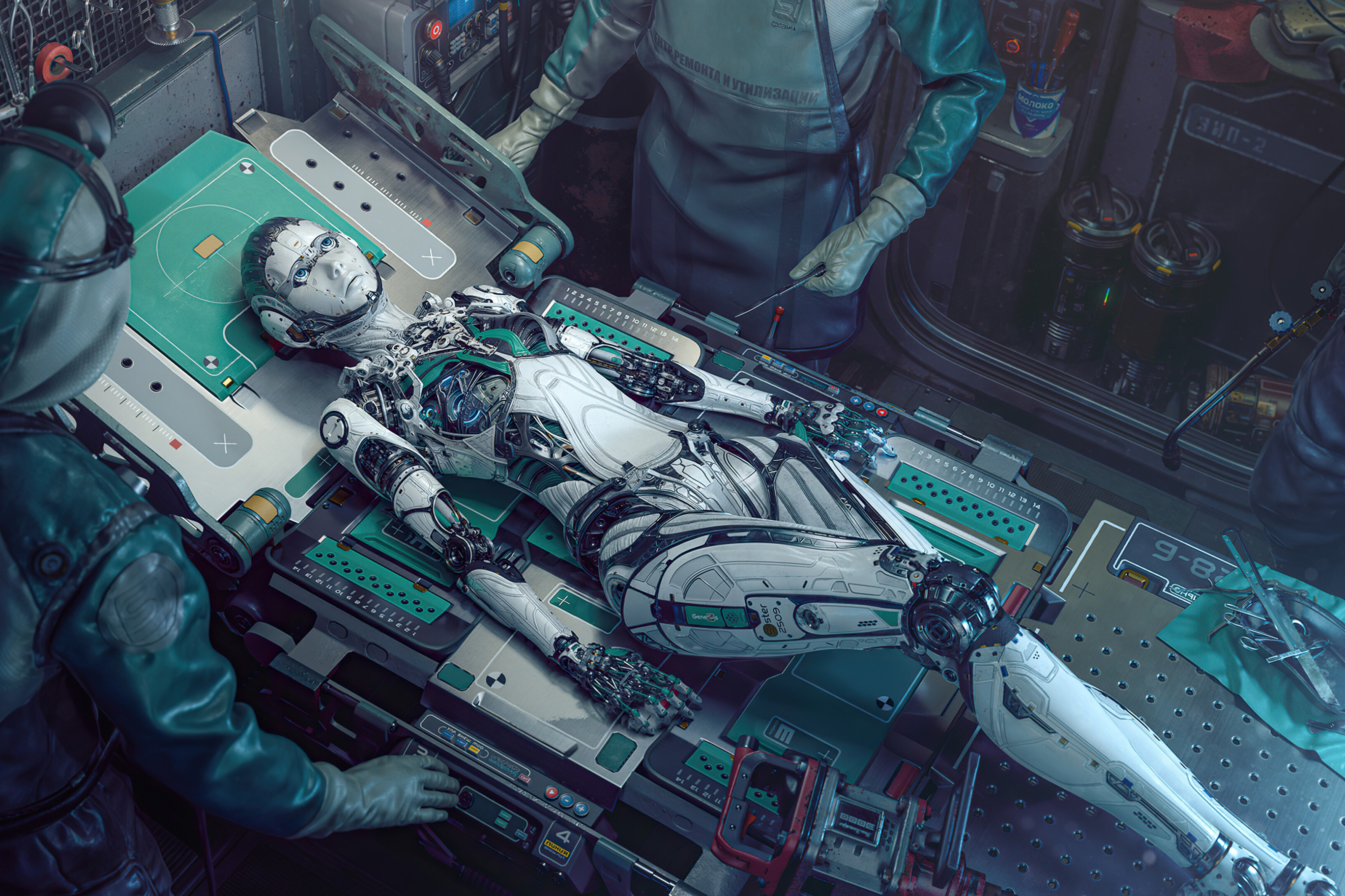 Назад к обои robot, woman, art, man, hi-tech, Doctor, tecnology, Cyberpunk