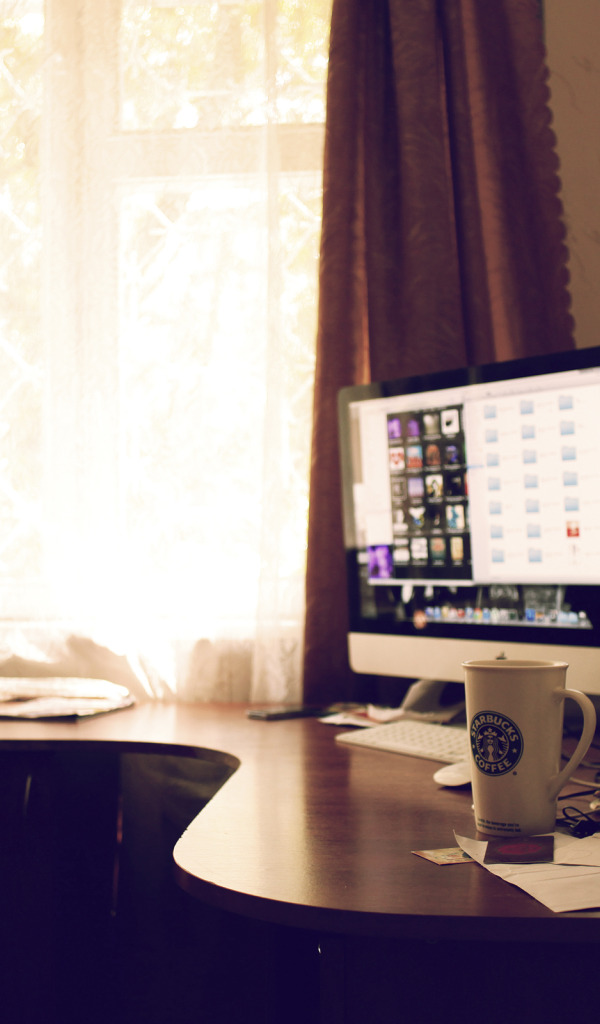 Назад к обои солнце, комната, яблоки, apple, техника, кружка, mac, рабочее место