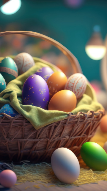 Назад к обои фон, корзина, яйца, colorful, Пасха, background, Easter, eggs