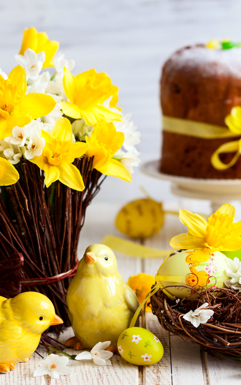 Назад к обои цветы, яйца, весна, Пасха, статуэтка, выпечка, нарциссы, spring