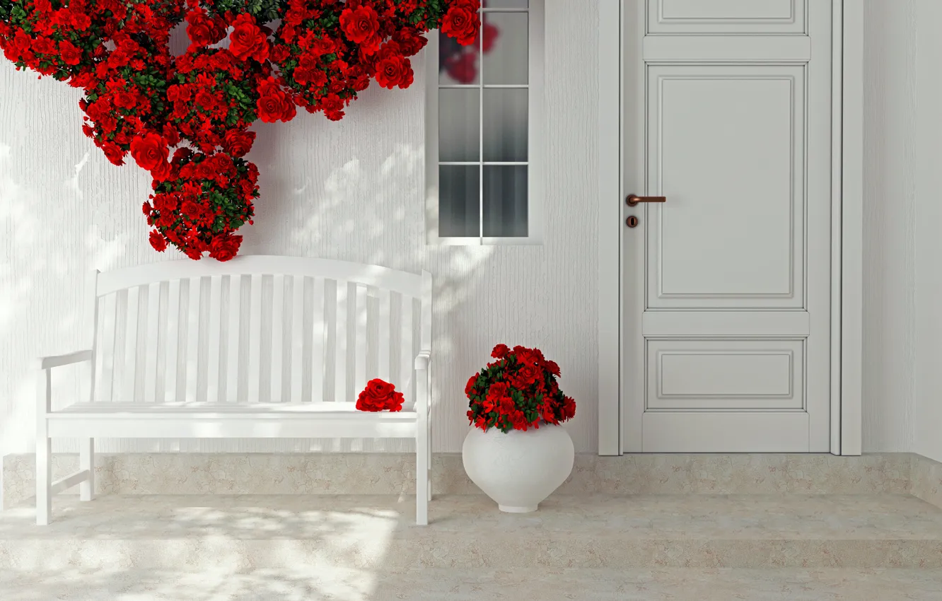 Цветы, красный, розы, интерьер, дверь, ваза, декор обои на телефон (фото, картинки)