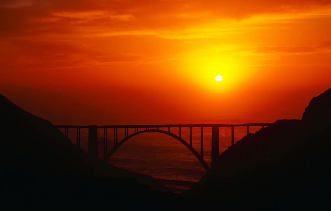 Море, солнце, закат, мост обои на телефон (фото, картинки)