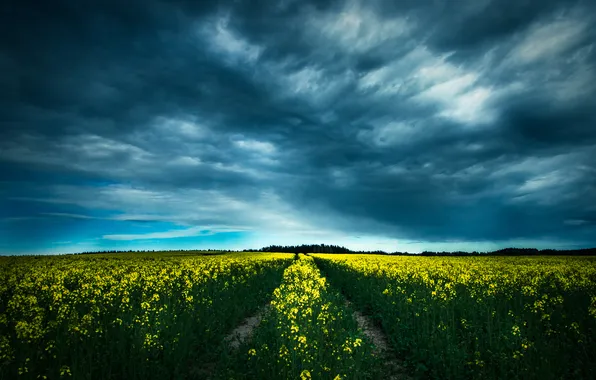 Поле, небо, солнце, облака, деревья, цветы, горизонт обои на телефон (фото, картинки)