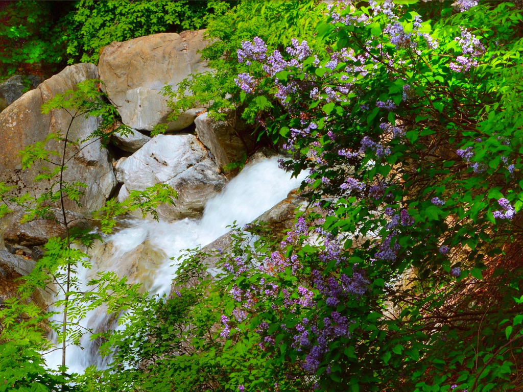 Назад к обои природа, скалы, водопад, поток, весна, цветение, nature, сирень