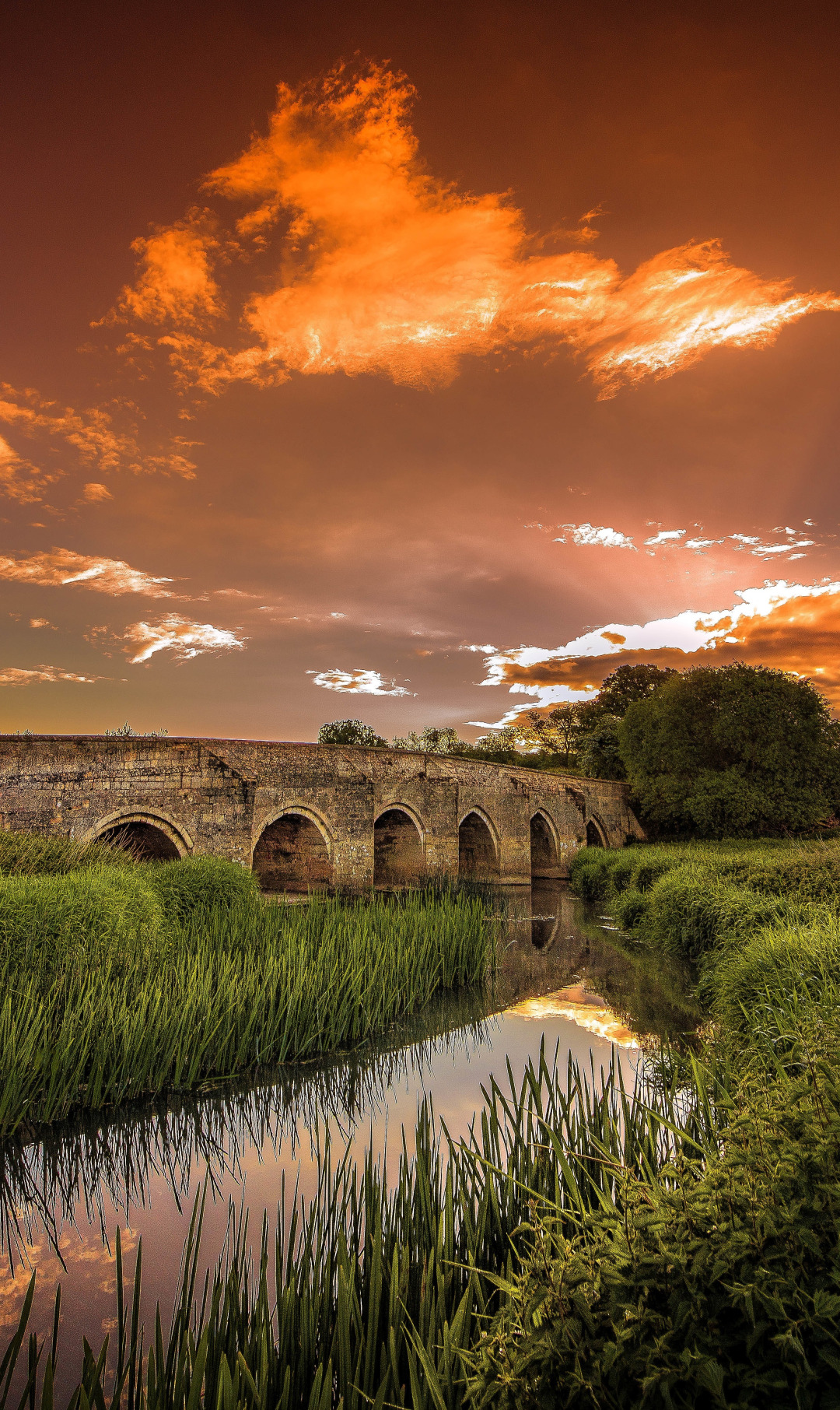 Назад к обои поле, небо, трава, солнце, облака, цветы, мост, отражение