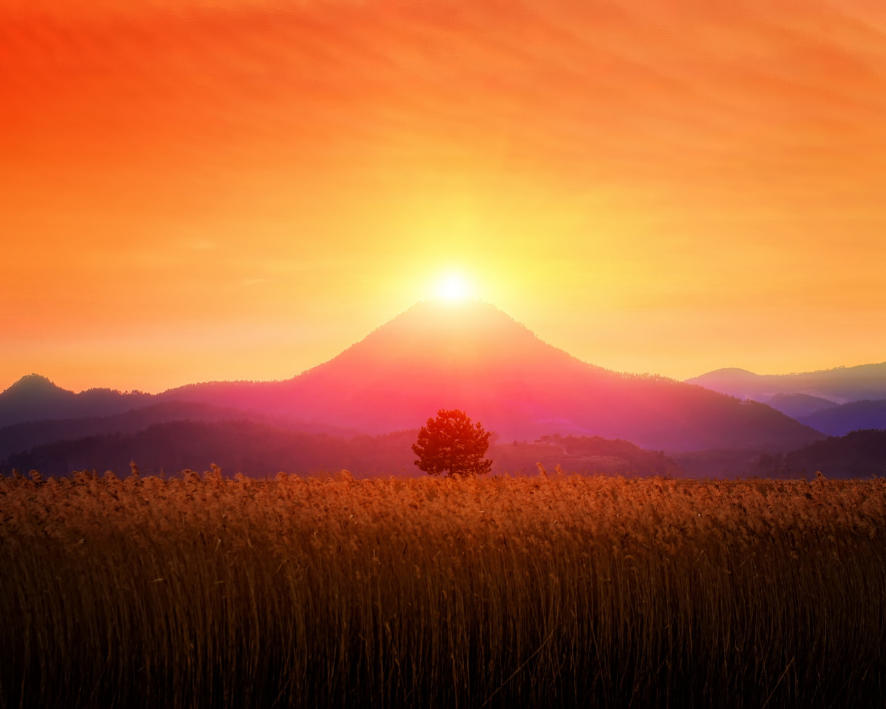 Назад к обои light, sunset, mountain