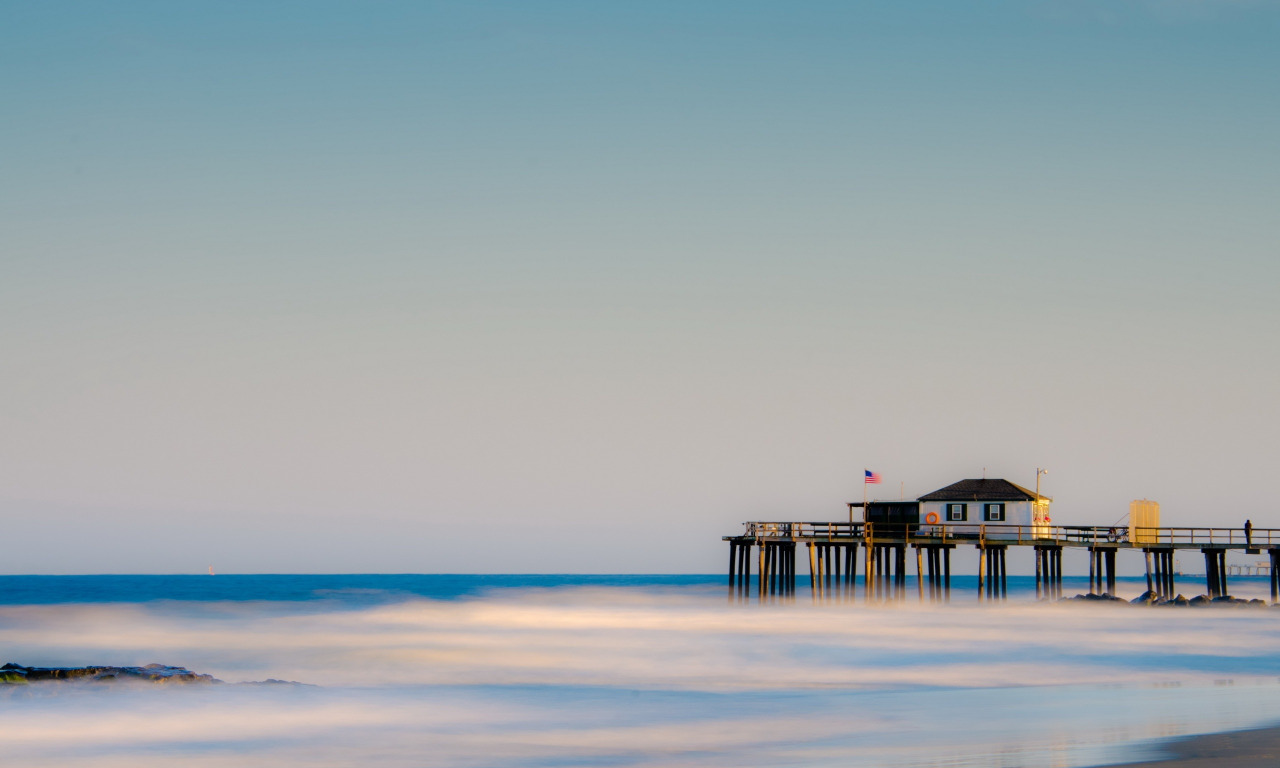 море, небо, пейзаж, мост