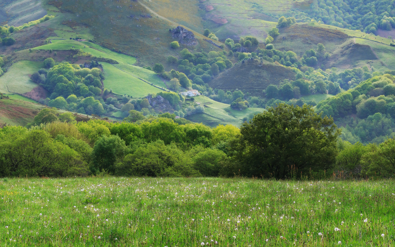 Назад к обои поле, трава, солнце, деревья, горы, холмы, дома
