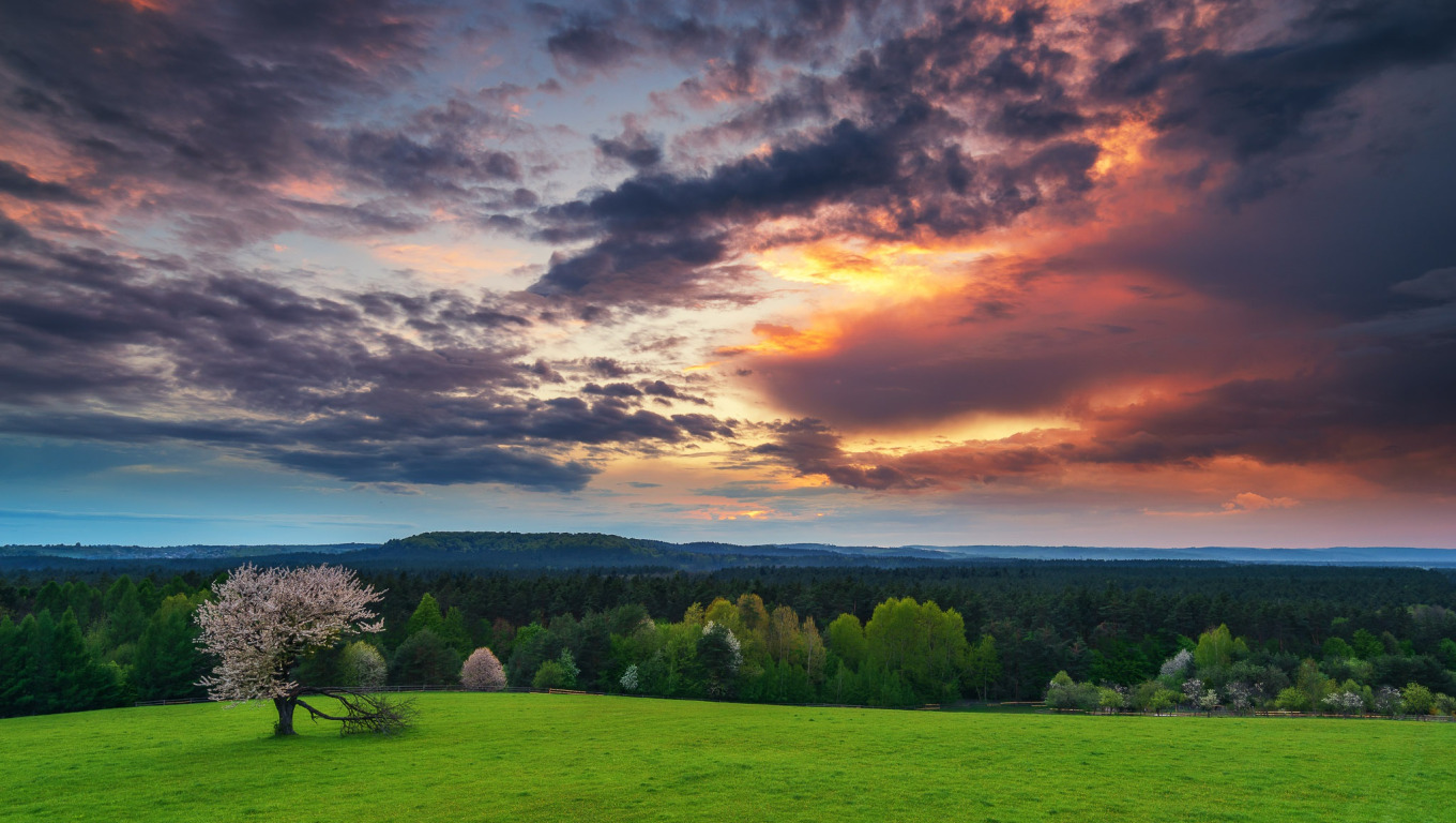 Назад к обои поле, лес, деревья, пейзаж, тучи, природа, Польша, Sośnicki Michał