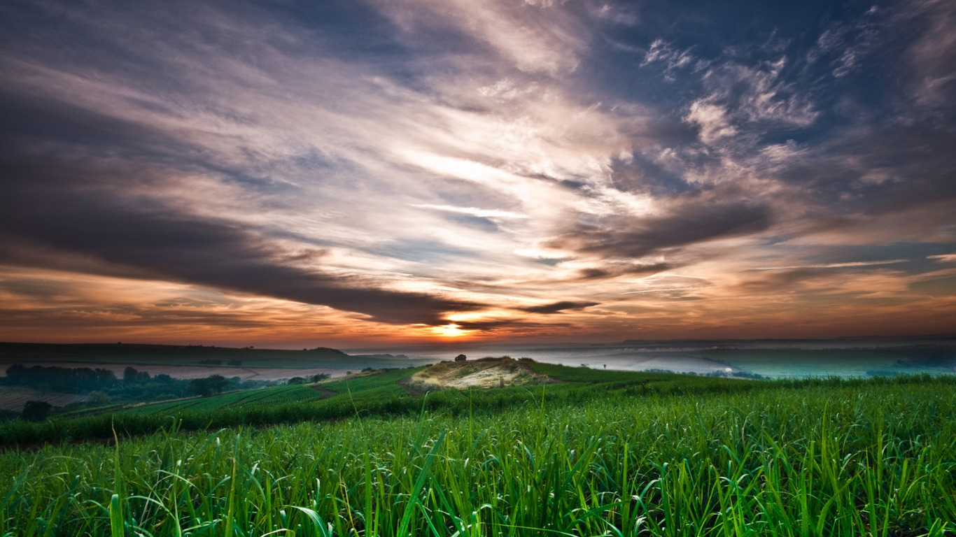 Назад к обои поле, небо, трава, облака, закат