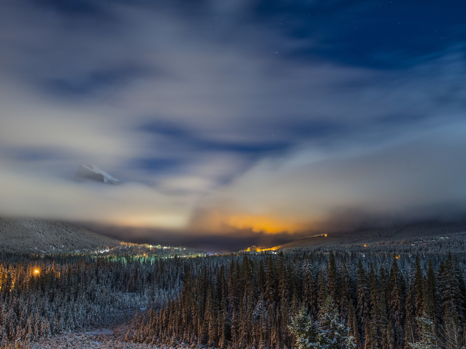пейзаж, ночь, Alberta, Canada, Moonlight Sonata