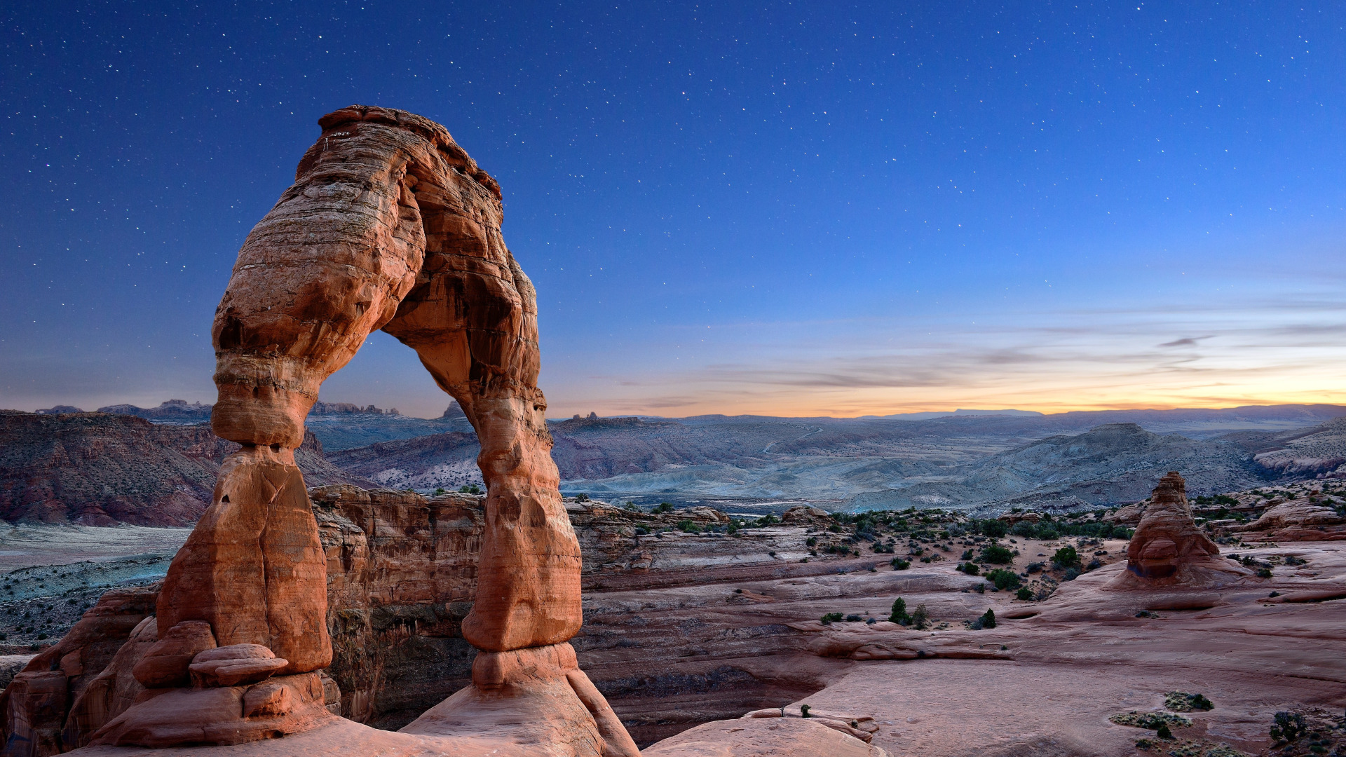 Назад к обои небо, звезды, закат, камни, горизонт, каньон, арка, Юта