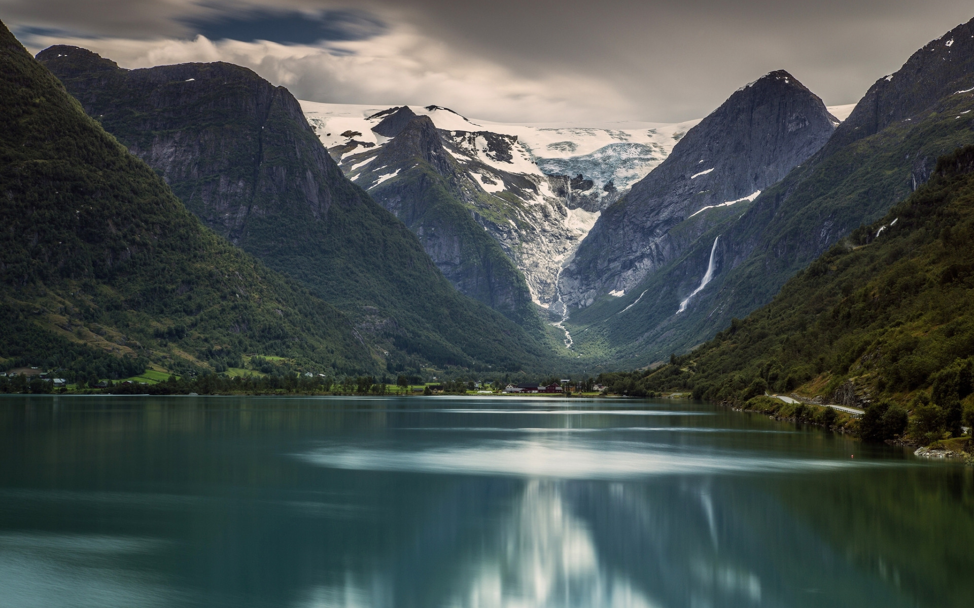 Назад к обои горы, озеро, Норвегия, Norway, Стрюн, Национальный парк Йостедалсбреен, Ледник Бриксдаль, Jostedalsbreen National Park