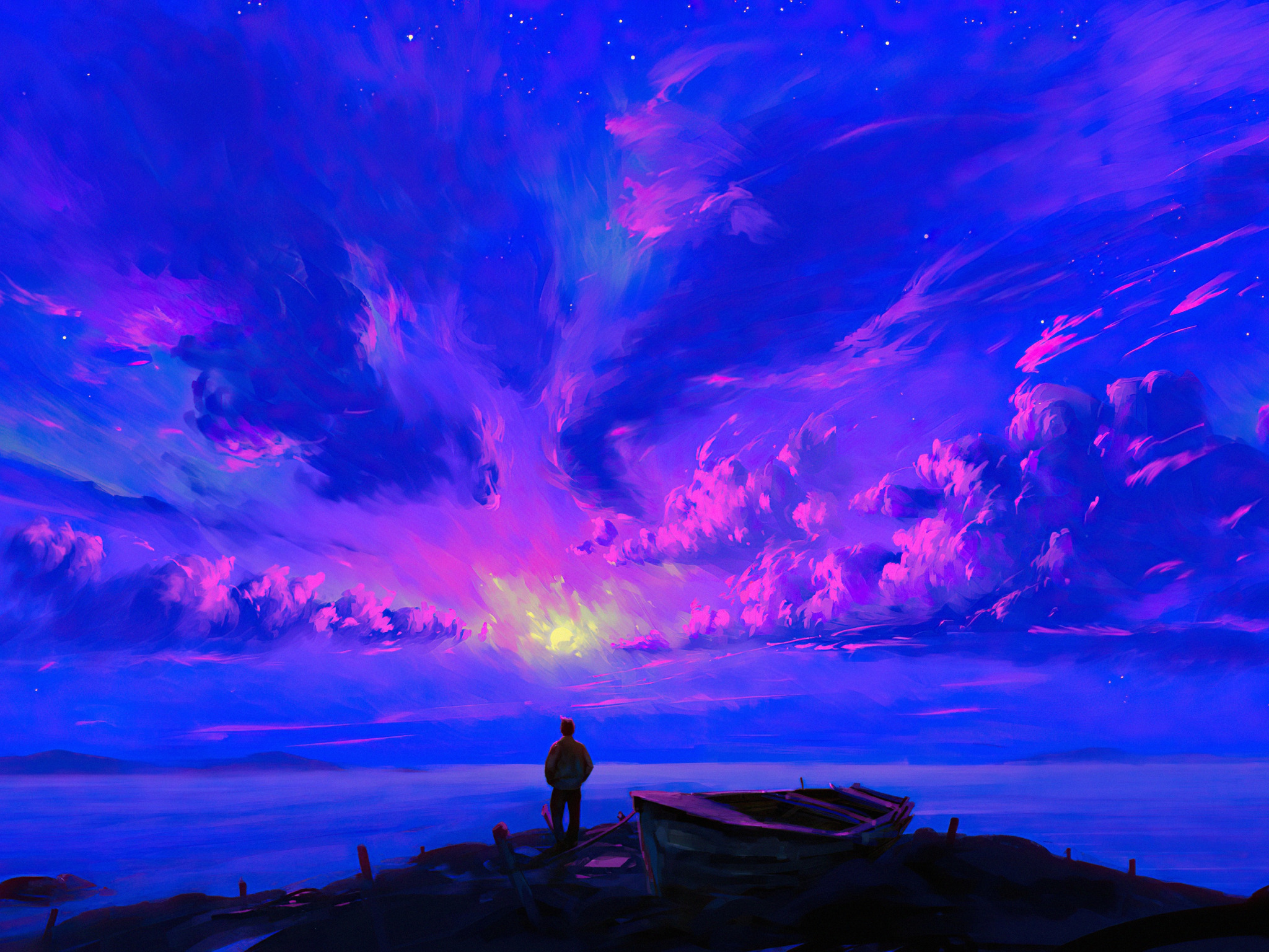 Назад к обои закат, рассвет, человек, водоем, sunset, man, dawn, blue sky