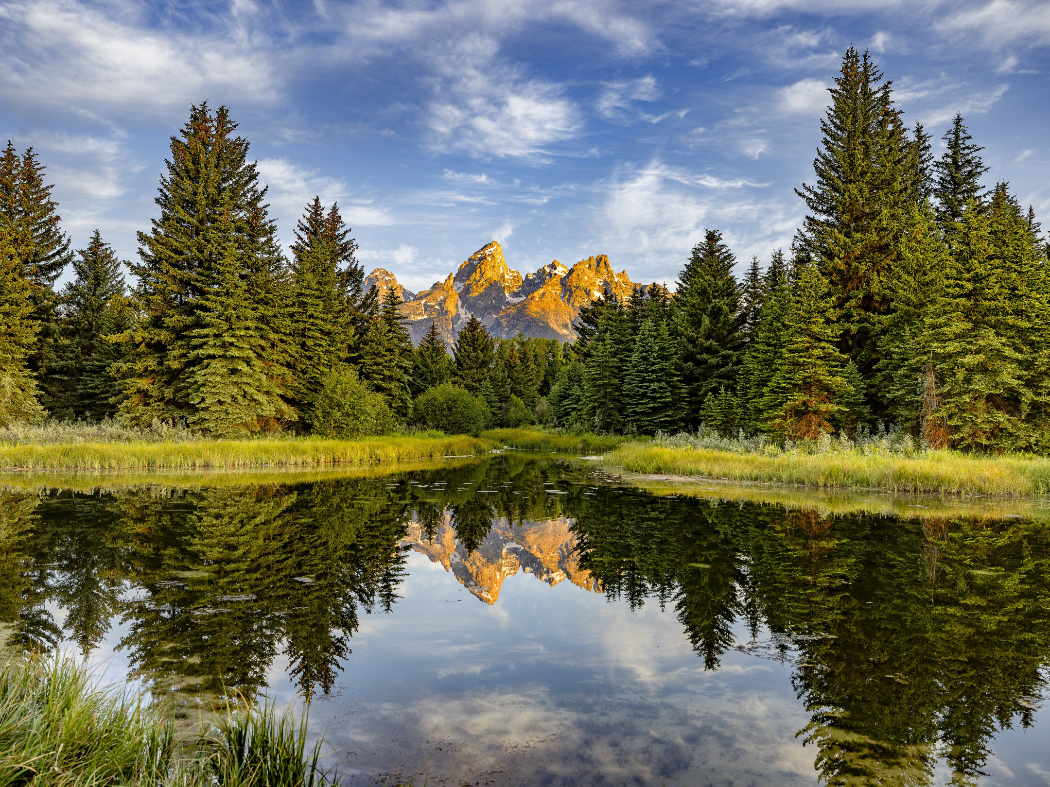 лес, небо, облака, свет, горы, озеро, отражение, синева