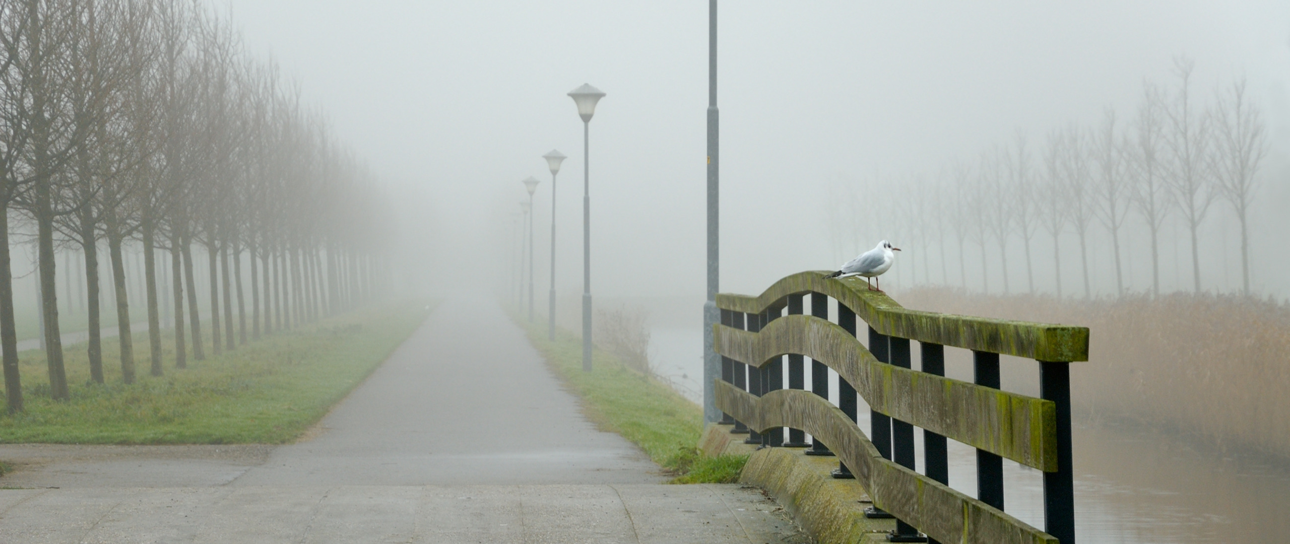 Назад к обои дорога, вода, пейзаж, туман, птица