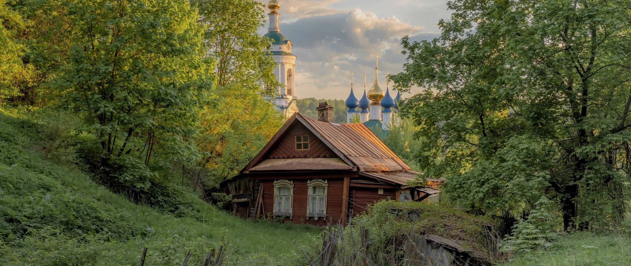 Назад к обои green, house, sky, clouds, sun, temple, villafe
