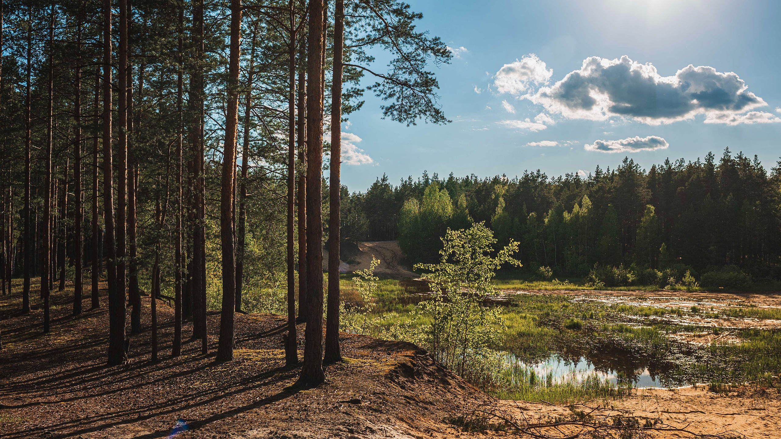Назад к обои лес, небо, солнце, деревья, река, тень, шишки, Васильев Владимир