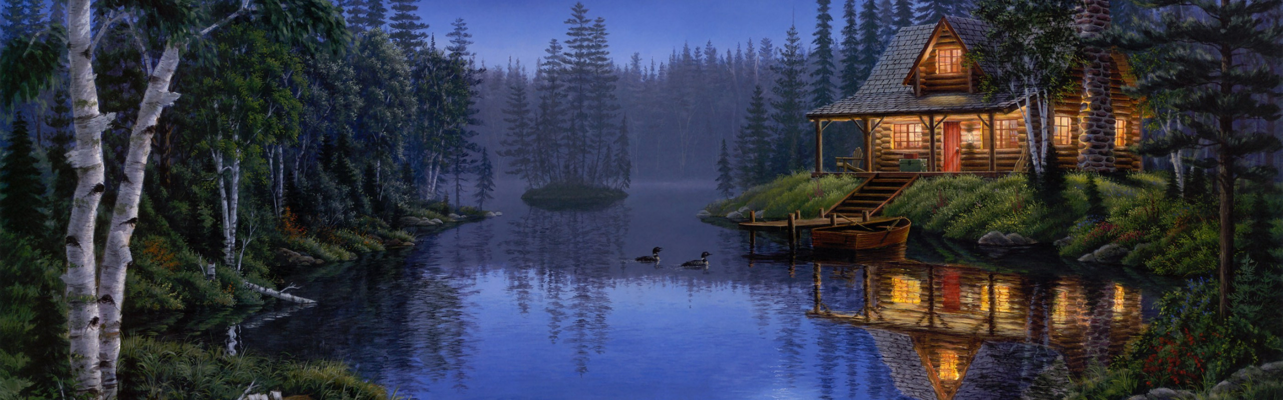 Назад к обои light, moon, house, forest, night, lake, painting, moonlight