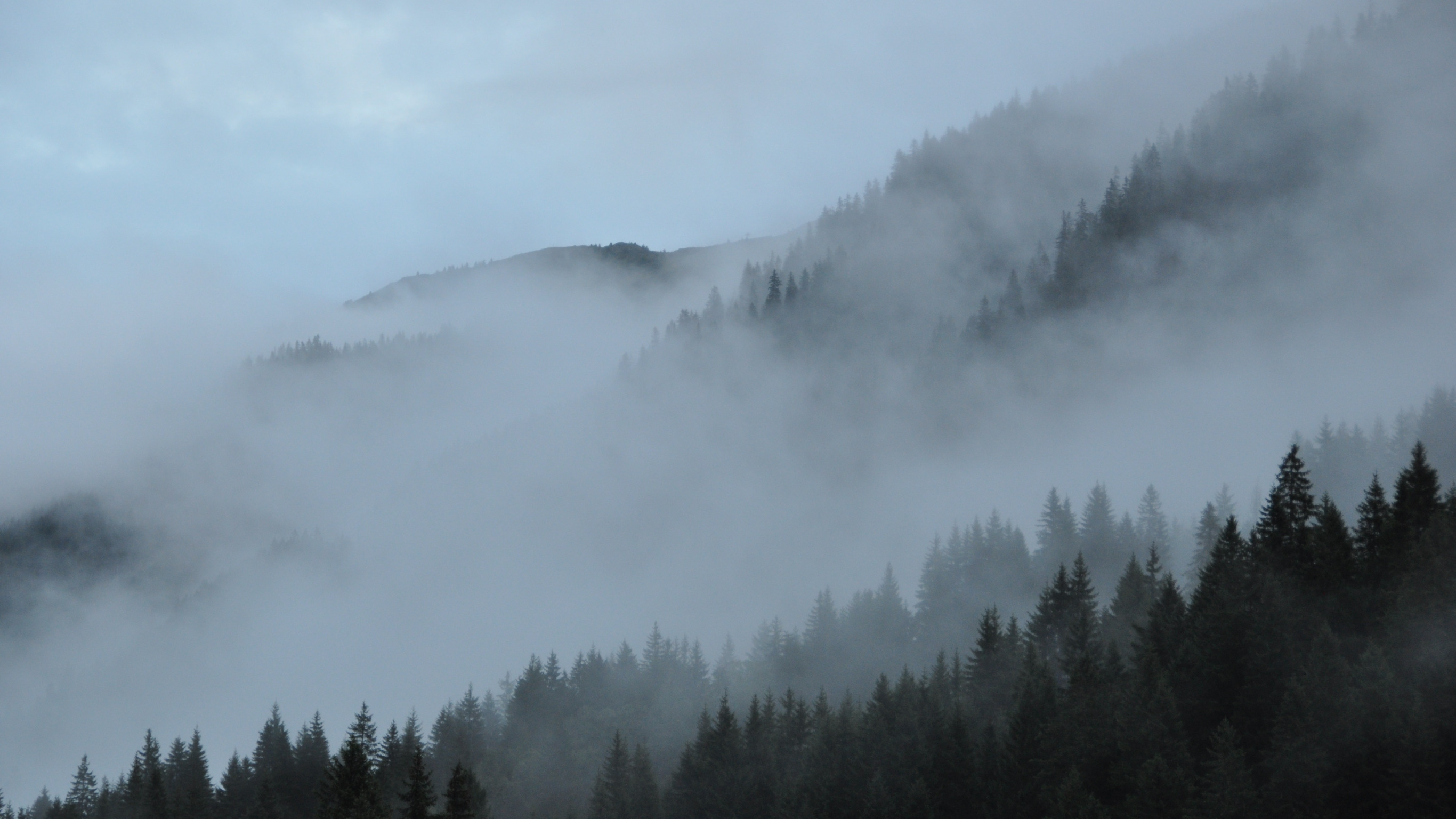 лес, небо, деревья, горы, природа, туман