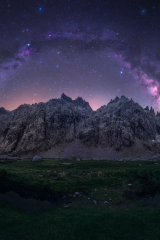 Назад к обои звезды, горы, ночь, озеро, млечный путь