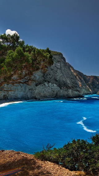 Назад к обои пляж, деревья, скалы, побережье, Греция, Greece, Lefkada, Лефкада
