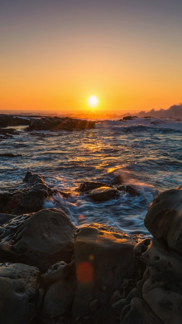 Назад к обои море, волны, небо, солнце, лучи, свет, закат, камни