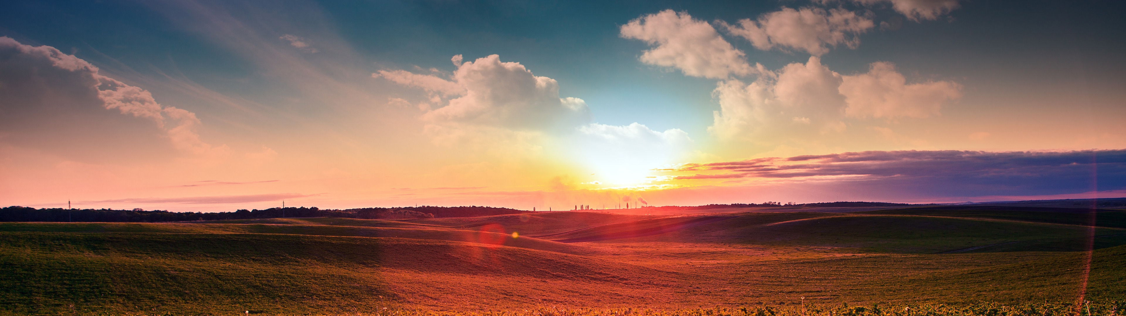 Назад к обои зелень, поле, небо, солнце, облака, рассвет