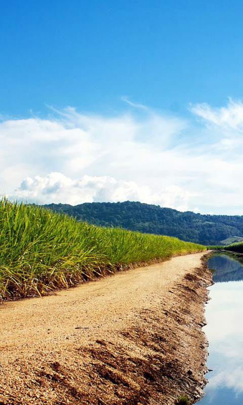 Назад к обои зелень, поле, вода, канал, Sugarcane Fields, сахарный тростник