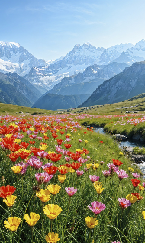 Назад к обои цветы, горы, весна, colorful, луг, blossom, flowers, mountains