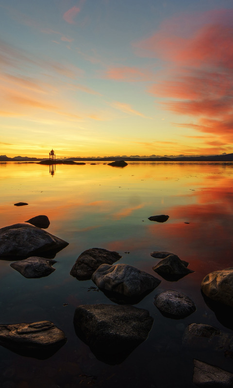 Назад к обои лес, небо, облака, закат, отражение, камни, рассвет, берег