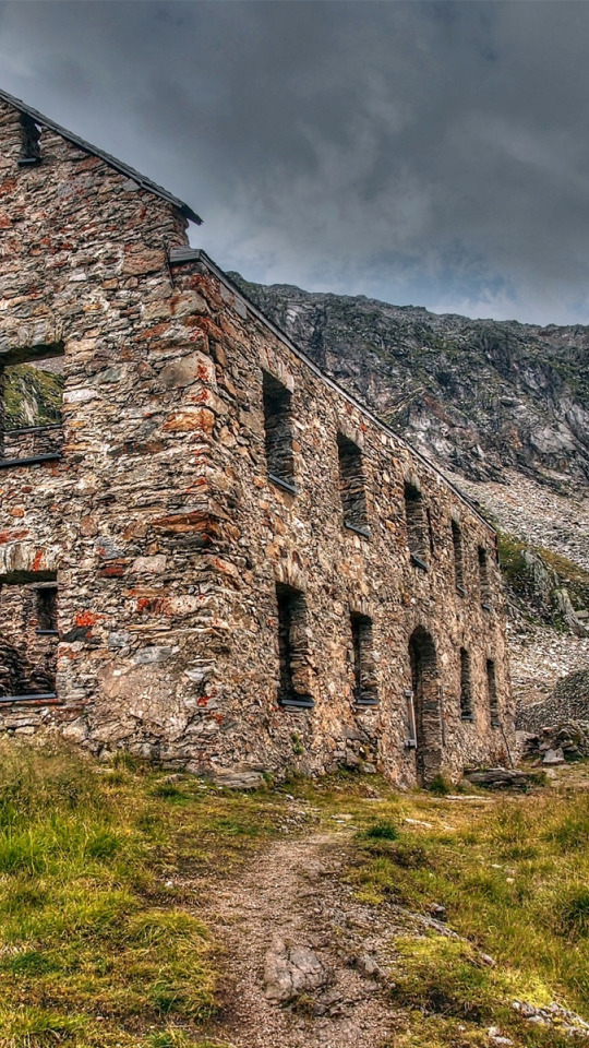 Назад к обои дорога, трава, горы, здания, руины, заброшенность, каменный