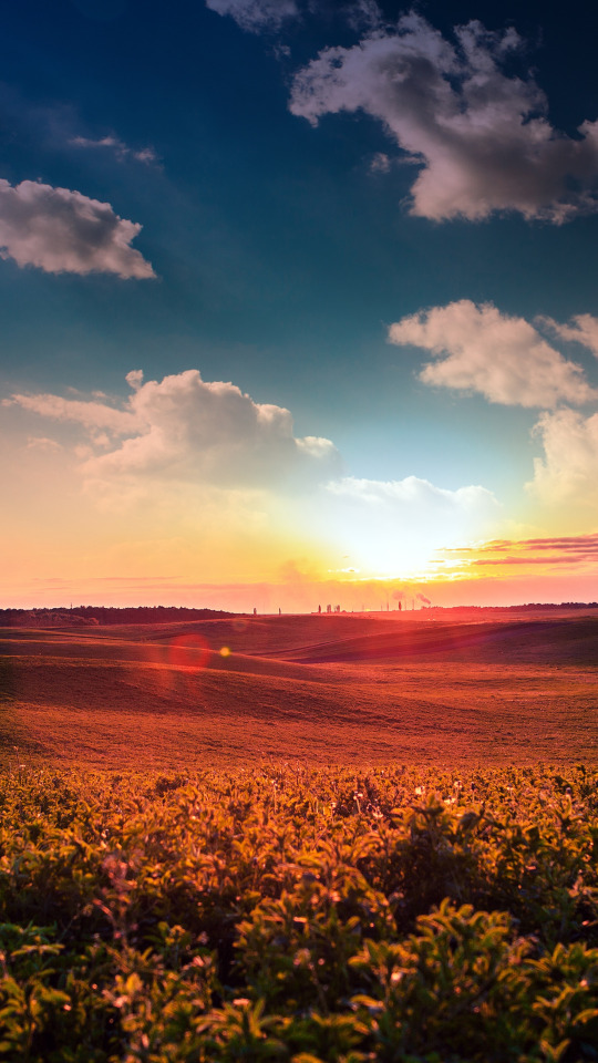 Назад к обои зелень, поле, небо, солнце, облака, рассвет